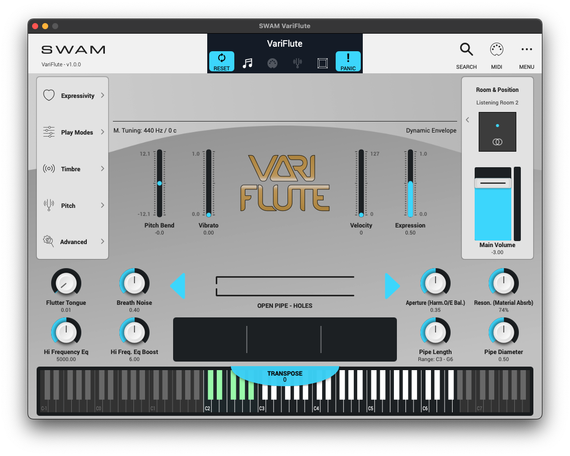 At the heart of SWAM VariFlute is over a decade of cutting-edge research in physical modeling. Unlike sample-based instruments, VariFlute doesn’t rely on recorded sound — it generates sound in real time by simulating the physics of airflow, material, and resonance inside a flute.